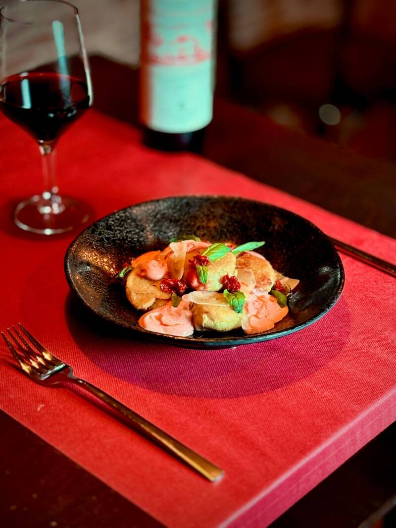 Unos suaves ñoquis caseros envuelven un irresistible cerdo desmenuzado, marinado durante 48 horas en cerveza y horneado lentamente, hasta alcanzar una ternura y jugosidad excepcionales. Todo ello bañado en una salsa bechamel de pesto de tomate, que aporta un toque fresco y ligeramente dulce, realzado con tomates cherry confitados y fragantes hojas de albahaca. Finalmente, el plato se saltea en una delicada mantequilla de romero, un aroma cálido y envolvente: una explosión de sabores que cautiva desde el primer bocado.